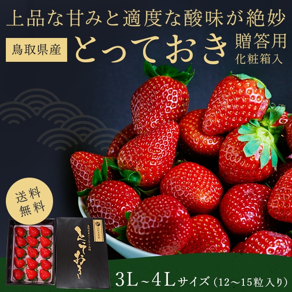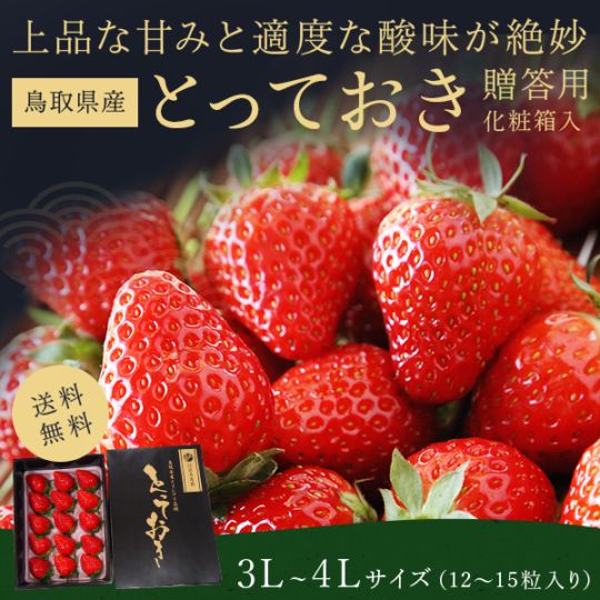 【送料無料】【3月末までの出荷】 鳥取県オリジナルいちご「とっておき」 贈答用 3L~4L 12粒~15粒