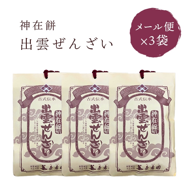 【メール便 送料無料】古式伝承出雲ぜんざい×3袋 メール便 原寿園 神在餅(じんざいもち) ぜんざい 餅入り
