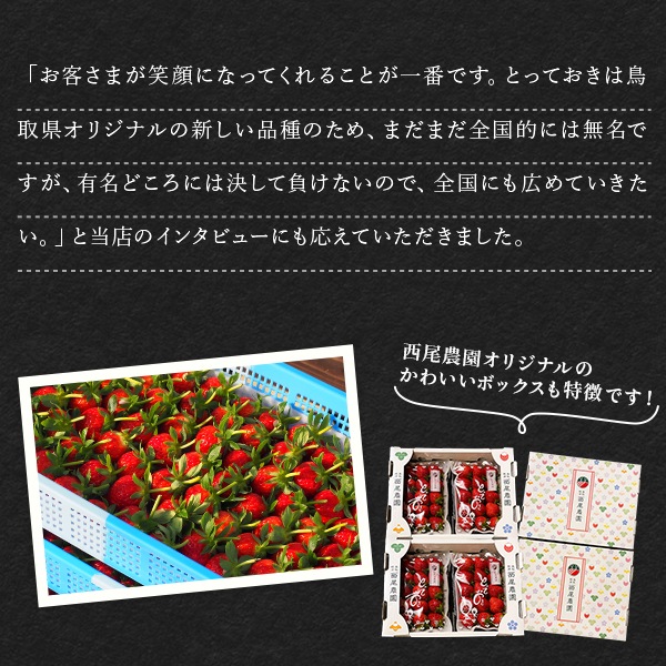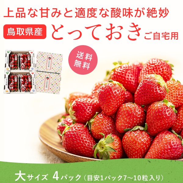 【送料無料】【3月末までの出荷】 鳥取県オリジナルいちご「とっておき」 ご自宅用 大 4P入り(1P目安5~10粒入り)