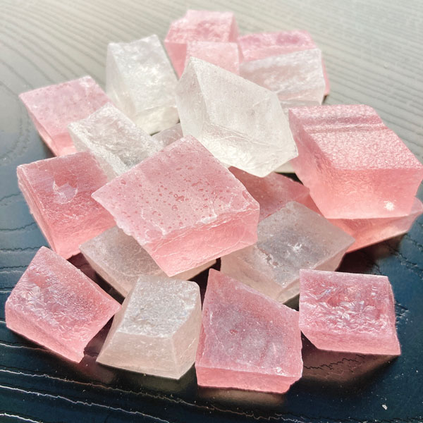 - 砂糖(国内製造)、桜の花抽出物シロップ、ピーチペースト、寒天/クチナシ色素、ベニコウジ色素、香料、酸味料(原材料の一部にモモを含む)