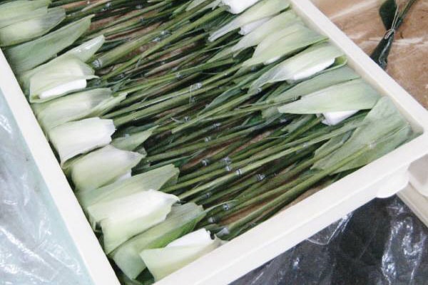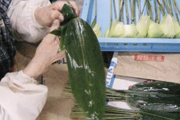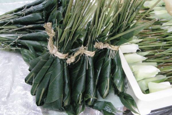 笹巻きに使う笹は、あらかじめ熱湯につけて柔らかくしてあります。