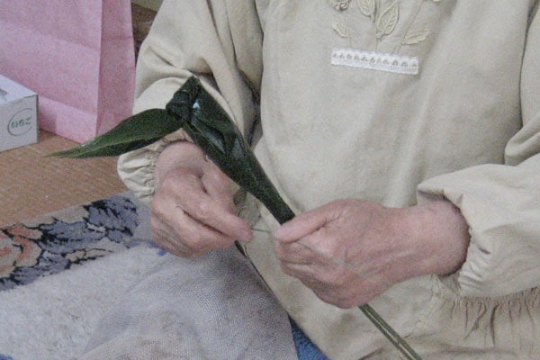 井戸端会議をしながらも手は素早く動いていて、団子はあっという間に笹の葉で丁寧にくるまれました。